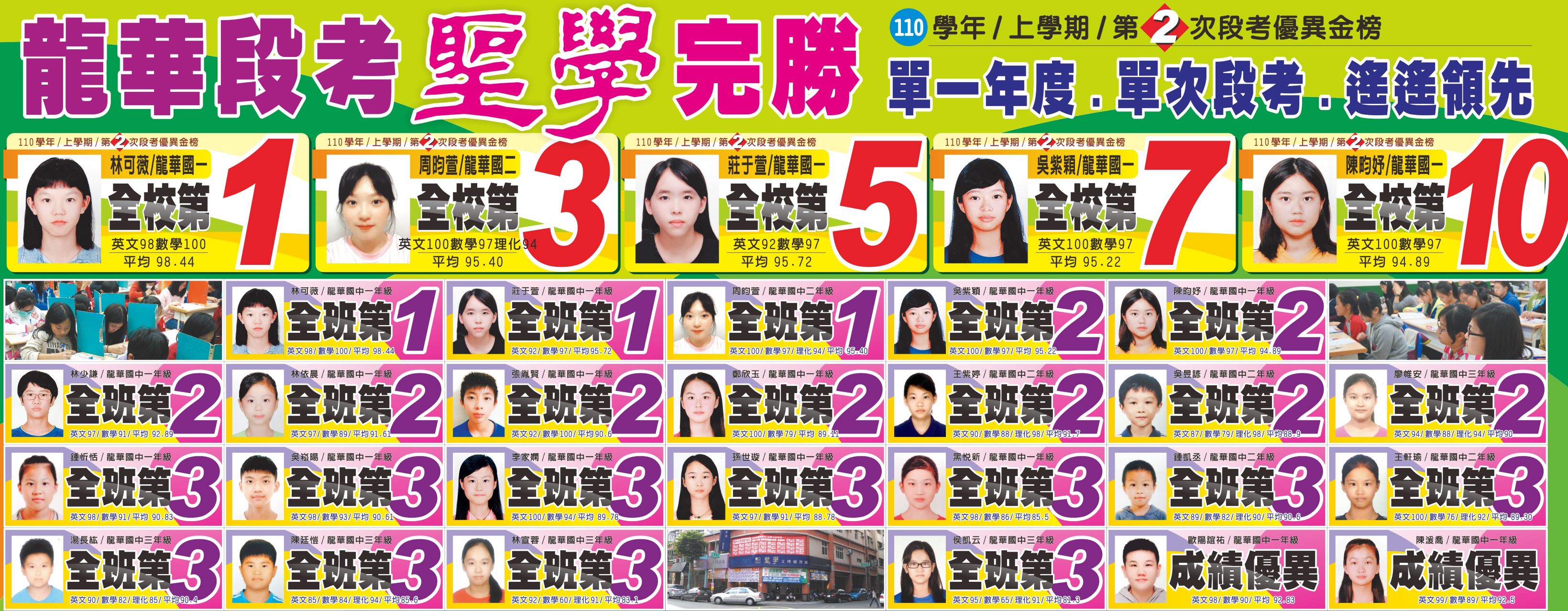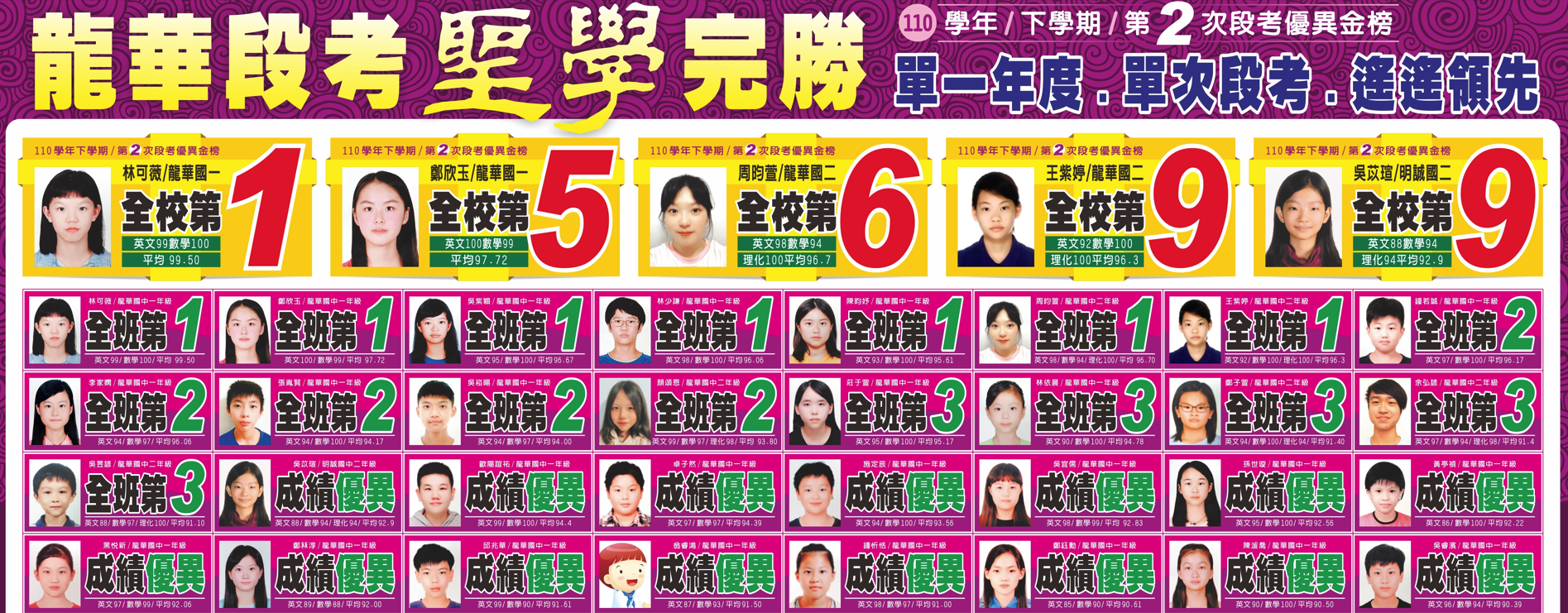 成績會說話、榜單看實力 一次段考成績,就勝過他班多次段考成績累積 單一學區榜單,就勝過他班多校聯合榜單