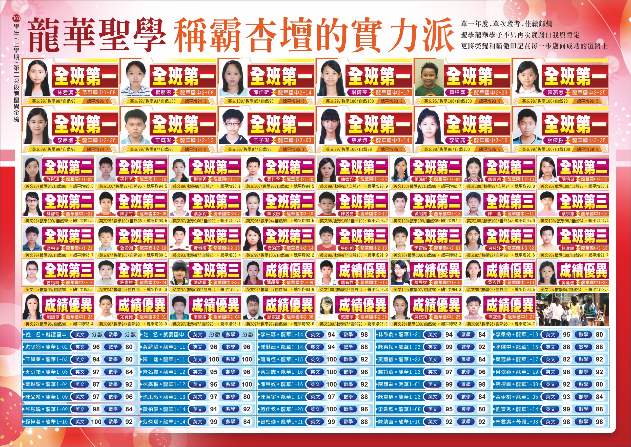 成績會說話、榜單看實力 一次段考成績,就勝過他班多次段考成績累積 單一學區榜單,就勝過他班多校聯合榜單